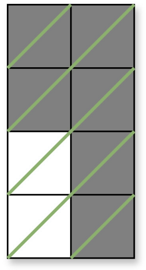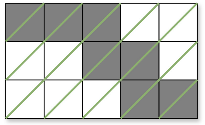 Зеленим позначено антидіагоналі, а сірим — зафарбовані клітини