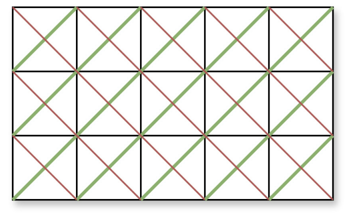 На малюнку зеленим зображені усі антидіагоналі для матриці ~n=3,m=5~, а червоним — головні діагоналі, які вас в цій задачі не цікавлять